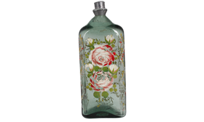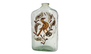 Schnapsflasche der Sammlung Spiegelhalder, Glas mit Emaille-Bemalung, Aufschrift „Solange man drinkt, so leb man sund 1785“. Reinigung der Oberfläche und Festigung der Bemalung. Vorder- und Rückseite im Nachzustand. Abbildung mit freundlicher Genehmigung des Franziskanermuseums Villingen- Schwenningen, Inv.-Nr. 7026, Foto: Melanie Konrad, 2015.