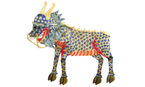 Chinesische Schattenspielfigur aus Pergament. Reinigung der Oberfläche, Abtrag einer historischen Fettung und Lösen der einhergehenden Verklebung der beweglichen Glieder. Sicherung von Rissen. Detailaufnahme im Vorzustand, Gesamtaufnahme im Nachzustand.Privatbesitz, Abbildung mit freundlicher Genehmigung des Eigentümers, Foto: Lucie Selb & Melanie Konrad GbR, 2016.