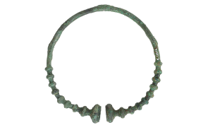 Halsreif, Armreif und Fibel, Kupferlegierung. Überarbeitung der Altrestaurierung, Klebung von Brüchen und partielle Stabilitätsergänzung. Vorzustand, Nachzustand. Abbildung mit freundlicher Genehmigung des Badischen Landesmuseums Karlsruhe, Inv.-Nr. C10304, C2622, R1654a, Foto: Lucie Selb & Melanie Konrad GbR, 2018/ 2019.