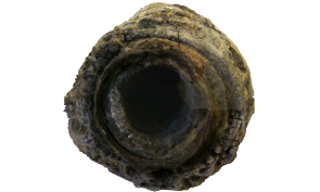 Hölzerne Wasserrohre, Karlsruhe-Durlach, Kiefer gefällt 1640/41, Bergung 2015. Reinigung, Sicherung der Rinde und kontrollierte atmosphärische Lufttrocknung. Detailaufnahme im Vor- und Nachzustand.Abbildung mit freundlicher Genehmigung des Pfinzgaumuseums, Karlsruhe, der Stadtwerke Karlsruhe und des Freundeskreises Pfinzgaumuseum - Historischer Verein Durlach e.V., Foto: Lucie Selb & Melanie Konrad GbR, 2015/ 2017.
